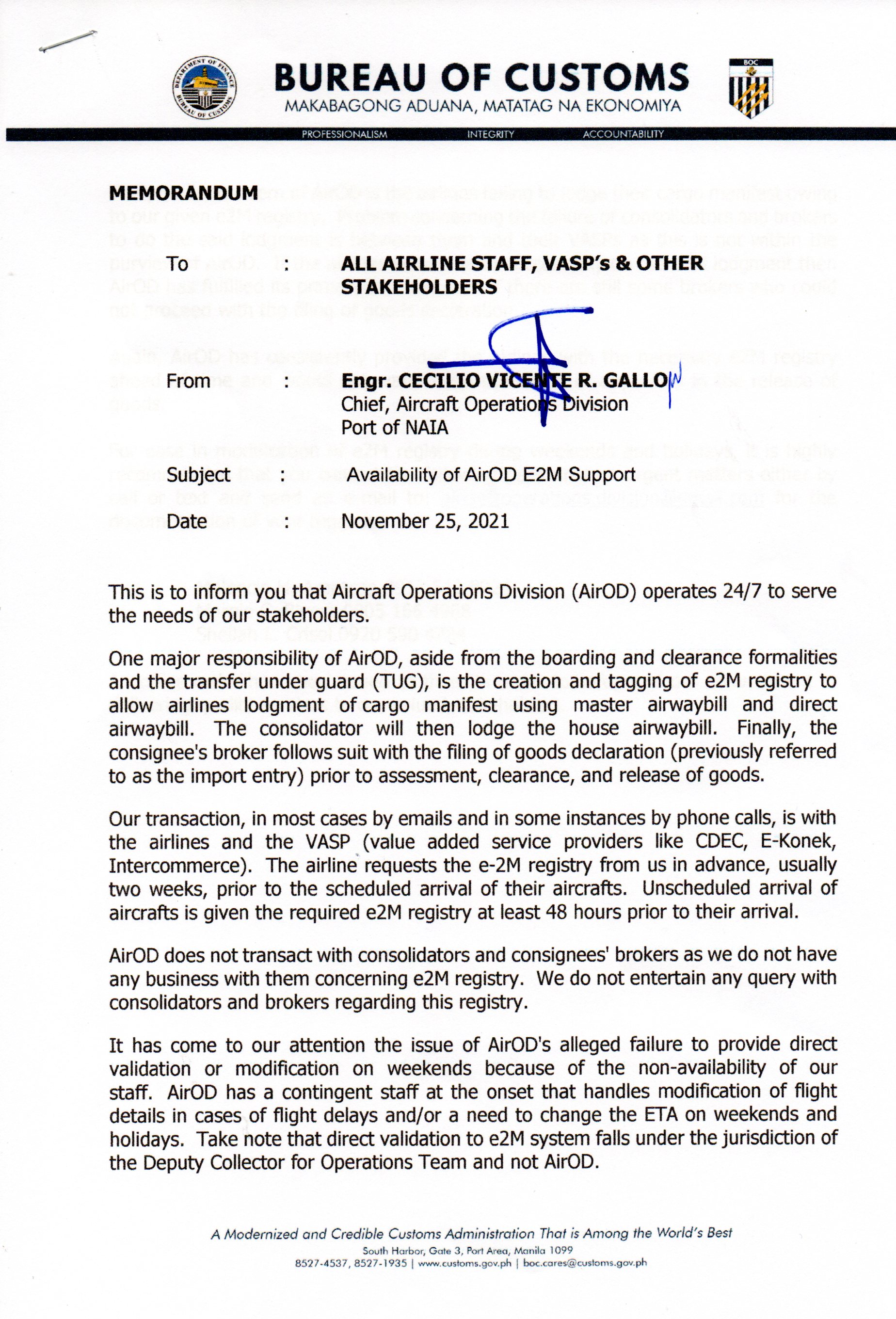Memo Stakeholders & Staff (Reiteration of AirOD Function) |