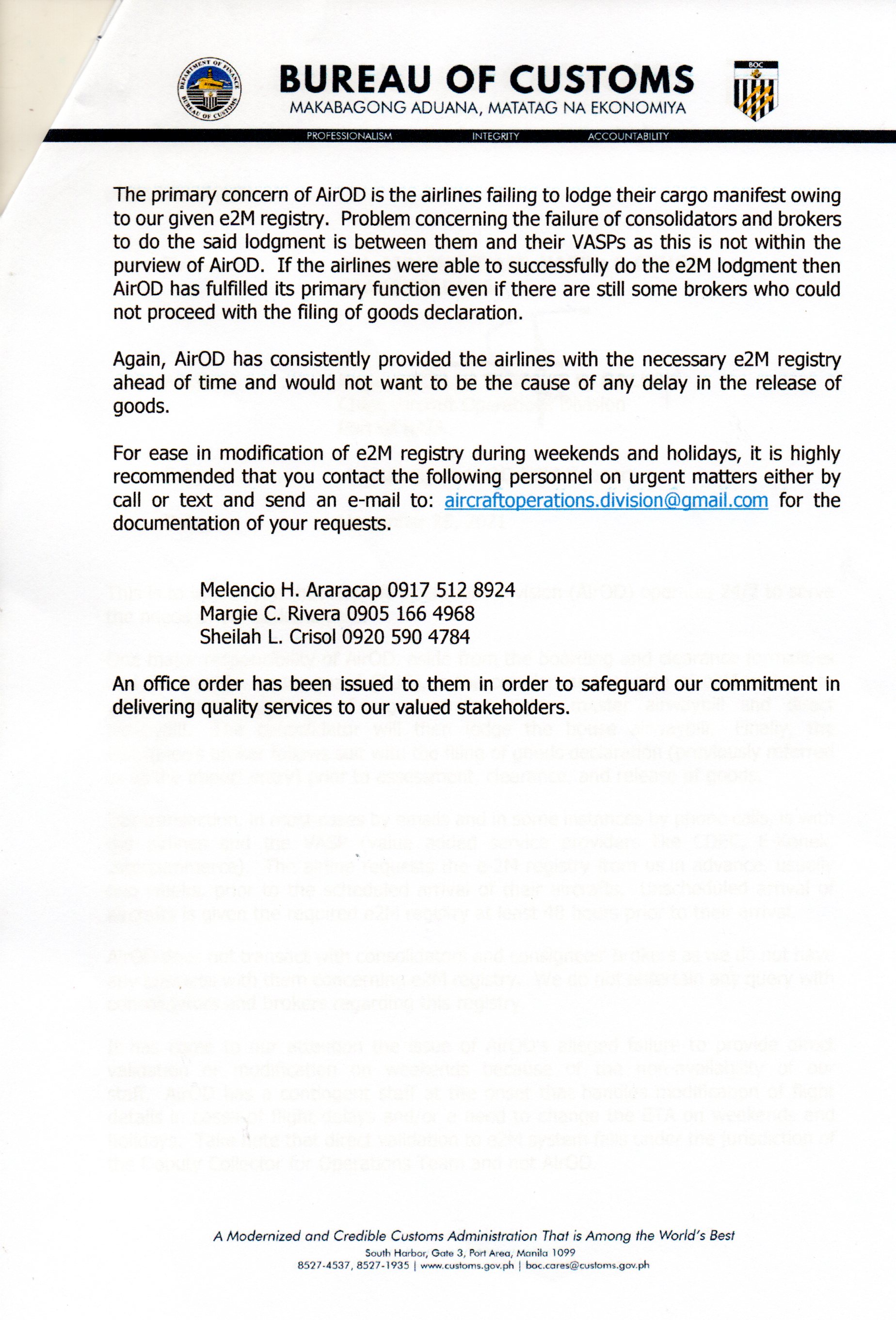 Memorandum e-Manifest submission affected during the downtime - signed |